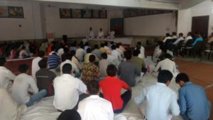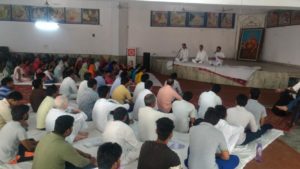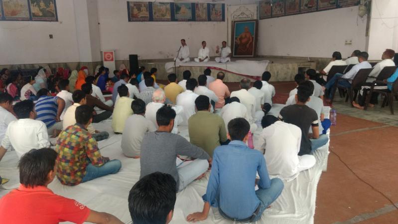 आचार्य धर्मपाल जी, आचार्य वेदप्रकाश जी व आचार्य अवनीश जी पं० रतिराम वाटिका, पानीपत में सत्र लेते हुए