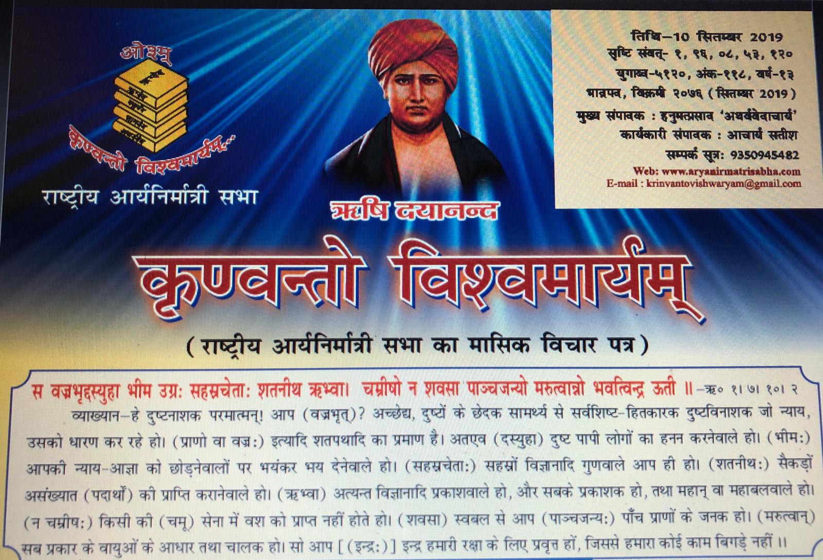 राष्ट्रीय आर्य निर्मात्री सभा से जुड़ें