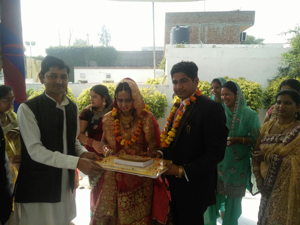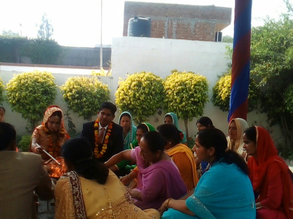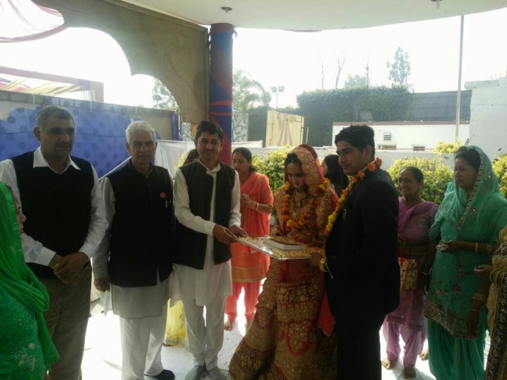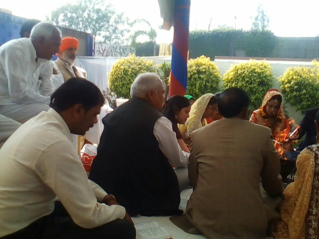आज 20/2/2017 को आर्य जयवीर जी के भतीजे आर्य विवेक सुपुत्र श्री आर्य जयभगवान जी के पाणिग्रहण संस्कार के पश्चात स्वागत समारोह में दैनिक यज्ञ के पश्चात पंडित आर्य लोकनाथ जी ने नव वर वधू सहित समारोह में उपस्थित हुए सभी महानुभाव को सम्बोधित करते हुए गृहस्थ के दस नियमों की व्याख्या की और गृहस्थ के कर्तव्य आकर्तव्यो का बोध कराया और आर्य संरक्षणी सभा करनाल जनपद के सचिव श्री आर्य संजय जी ने वर वधू को गृहस्थ के दस नियमों का लिखित पत्रक देते हुए सदैव इन नियमोंका जीवन में पालन करते रहने का संकल्प दिलवाया |